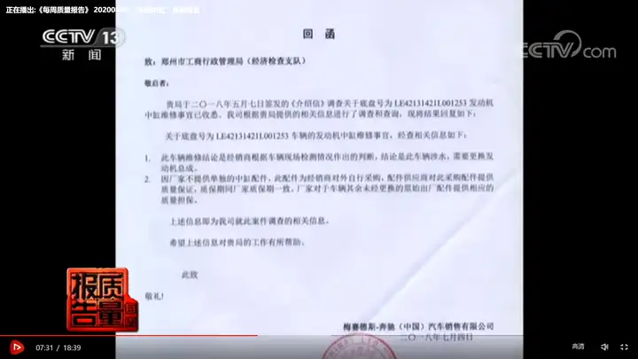 中央电视台报导截屏从网上“淘”来的零件 据中央电视台报导,2017年,奈县周先生只开了一年的商品宝马E200L小车,因暴雨引致引擎刹车片损毁周先生此前为工程车买回了引擎损毁车损险,所承保的新华保险人寿保险控股公司济南财险同意不予保险索赔。